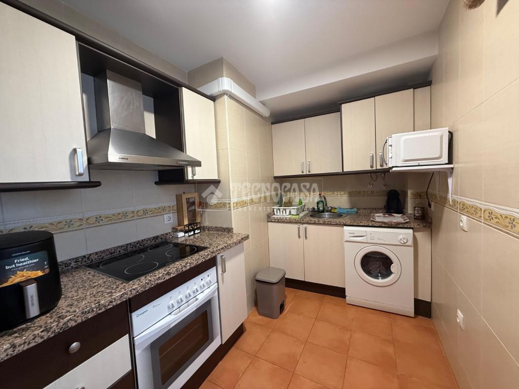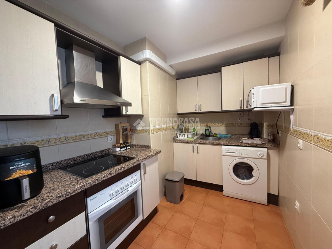 Dispone de un salón-comedor con cocina integrada, totalmente equipada con electrodomésticos, una habitación doble con armario empotrado, un baño completo y un aseo adicional.
